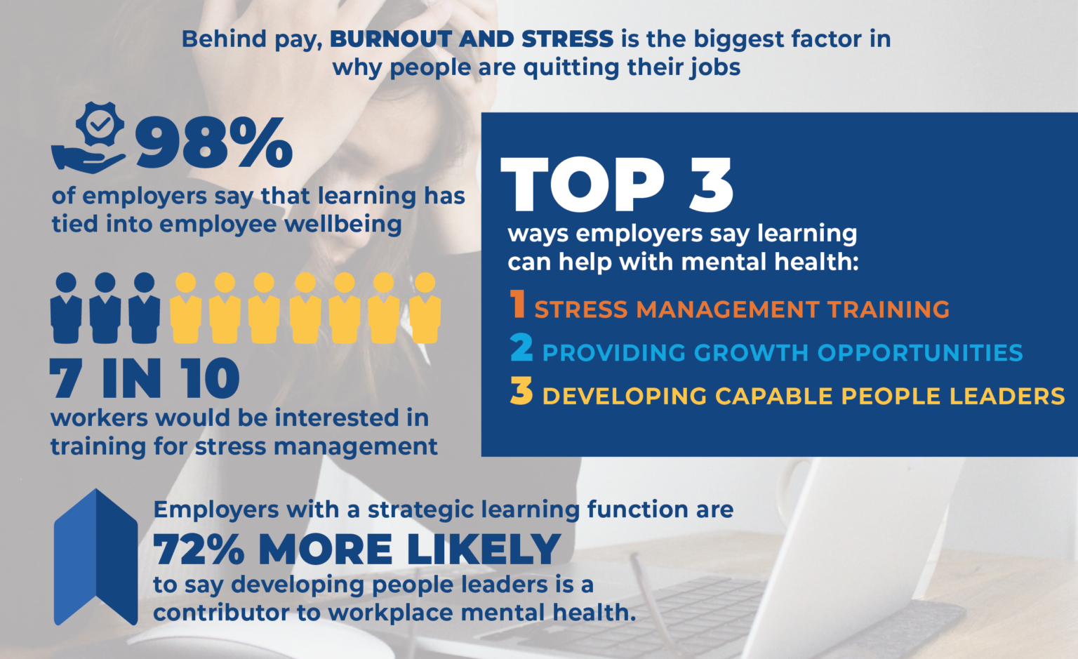 In our brand new research on learning and talent development, we looked at some of the key areas where employee demand is shifting and evolving. In many cases, workers aren’t just asking to be trained to upskill in their jobs anymore. With the talent shortage in place for many frontline roles, rising mental health challenges including stress and burnout, and a need for inclusive employer practices that support the needs of a diverse workforce, companies have to think more comprehensively when it comes to their training approach.