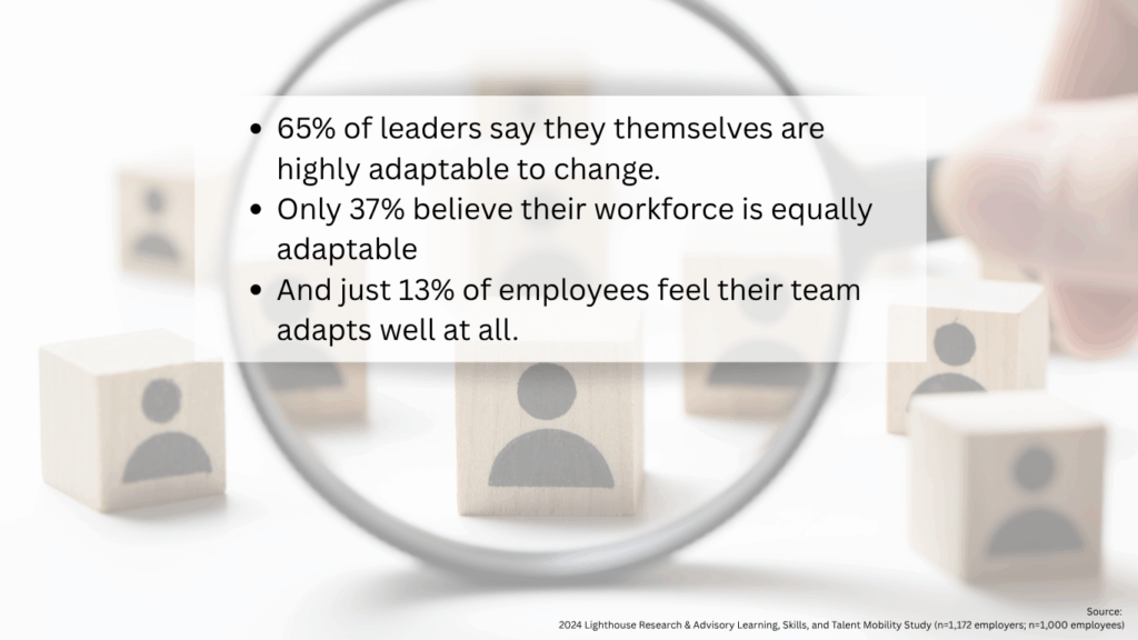 65% of leaders say they themselves are highly adaptable to change,