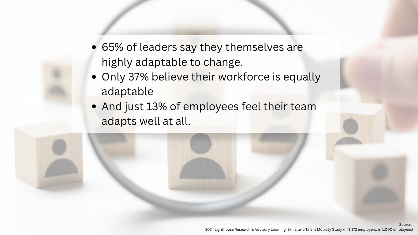 65% of leaders say they themselves are highly adaptable to change,